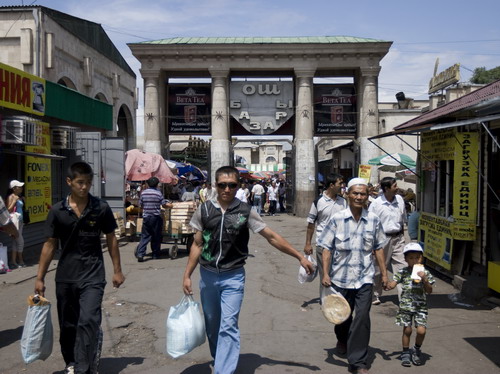 Раздавать приглашения удобнее всего было в самом людном месте - на базаре. Вход на базар Бишкека