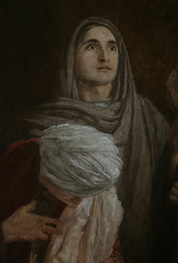 Увидев же звезду, они возрадовались радостью весьма великою, и, войдя в дом, увидели Младенца с Мариею, Матерью Его, и, пав, поклонились Ему; и, открыв сокровища свои, принесли Ему дары: золото, ладан и смирну (Мф. 2:10-11). Склонившийся над Младенцем в поклоне символизирует приношение царское, ибо Господь есть Царь. Возведший взор свой к небу – символизирует ладан, ибо Бог. Немощный старик – смирну, ибо Господь пришел в мир человеком, и был убит. |