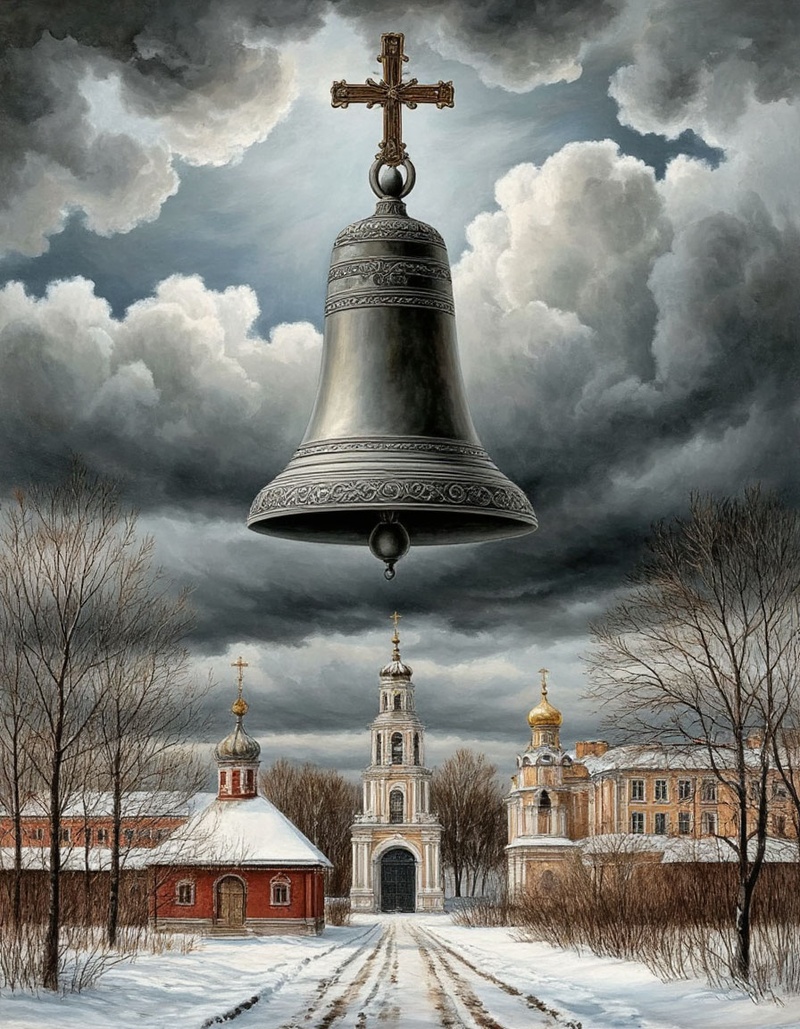 Когда на Великой Руси был принят Закон, Внедряющий в память людей бессмертную Истину, Послышался в тучах зимы пронзительный звон. И позже затих... В Москве говорил я Ракитину, Художнику с непростой и нелёгкой судьбой: "Рисуй этот Колокол, в нас пробудивший искренность. Отвергни врагов, устроивших мысленный сбой, Весь кризис духовный, как и немую бессмысленность". Он Колокол нарисовал и мне показал, Боясь неожиданной критики, мнений народных, Но, главное, совесть свою со злом не связал, Не взял за работу ни денег, ни женщин бесплодных, Забыв об успехе и днях, потраченных на Звучавшую в сердце тоску о стране уходящей. Теперь угнетает его одна тишина... В рисунке ведь спрятана воля с любовью манящей. 8.IV.2025 |