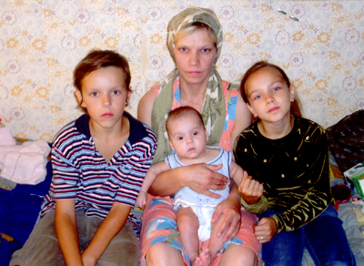 Просьбу о помощи Вере мы уже публиковали прошлым летом: сирота, многодетная одинокая мать, родилась в Омске, выросла на Украине, с начала девяностых годов проживает в Москве. С мужем – пьяницей развелась – и теперь вот уже долгие годы воспитывает четырёх детей одна. Без постоянного места жительства (всё по съёмным квартирам). В какой-то момент у неё возникли серьёзные проблемы с регистрацией, а стало быть, и с работой. Сейчас Вера снимает комнату в подмосковном Воскресенске. Ежемесячная плата за комнату -- четыре тысячи рублей. Чтобы оплатить жилье Вера торгует цветами возле метрополитена, ежедневно «мотаясь» между столицей и домом, на электричке (более двух часов с вокзала до станции).