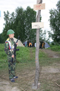 На другом берегу слышалась стрельба В это же время на противоположном берегу Томи, на стороне города, проходил другой лагерь, организованный городским клубом «Юргинская застава». Эта смена, помимо воспитанников самого клуба, собрала детей из юргинского детского дома и православных следопытов, приехавших в гости из Кемерова и поселка Береговой. Влад Ионис - педагог БПС, разделивший полномочия руководства лагеря, вспоминает: «На «Заставе» была очень насыщенная спортивная программа и военная подготовка. Занимались стрельбой, ныряли с аквалангом, проводили тренировки по борьбе».