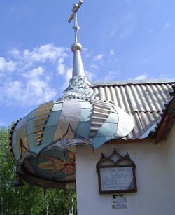 Единственный после Ярцева храм на нашем пути -- в поселке Бор. Храм, а точнее молитвенный дом, здесь уже несколько лет есть, а священника нет, но порой сюда, так как есть аэродром, прилетают монахи Туруханского монастыря, а то и архиепископ Красноярский Антоний.