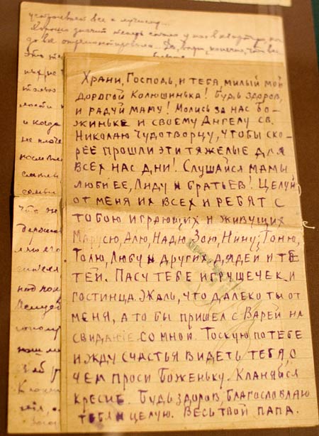 В Государственном историческом музее прошла выставка "Новомученики и исповедники Российские", организованная Православным Свято-Тихоновским Гуманитарным университетом. Мы будем постепенно знакомить читателей сайта с экспонатами выставки. Особенно сильное впечателение производят письма, настоящие письма из 20-х годов, из лагерей и ссылок. Первым мы публикуем фрагмент письма священномученика Николая Агафонникова, написанное из тюрьмы в 1923 году.