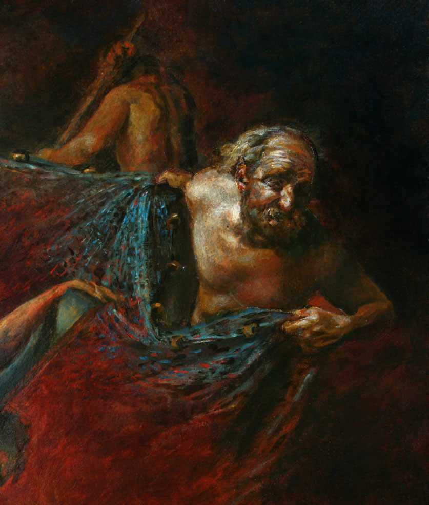 Один человек выбирал для себя крест, но все казались ему велики. И тогда обратился человек к Господу и попросил у Него тот, что был легче и меньше прочих. И не прогневал Господа, и дадено было ему, что просил, ибо всякий крест для человека свят и для бога ценен. И сказано было человеку: «Возьми крест свой и неси. На переднем плане просящий, он обращен к богу. Позади люди, каждый из которых несет свой крест. В правом верхнем углу апостолы Петр и Андрей, - рыбаки, призванные Господом стать «ловцами человеков». Они плывут на лодке и забросают сети христианства, чтобы выловить из адского пламени людей. В директориях "увеличить" и "скачать" фрагменты картины |