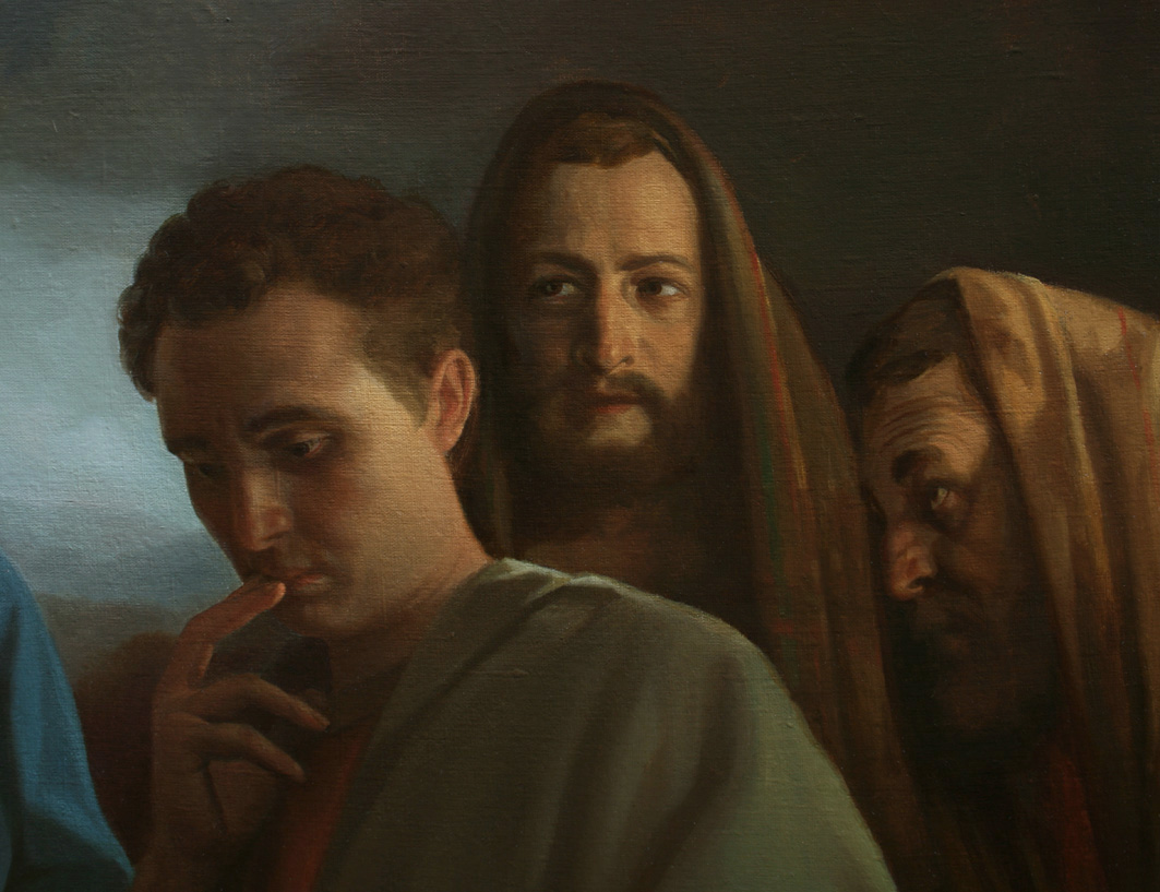 И вот, некто, подойдя, сказал Ему: Учитель благий! что сделать мне доброго, чтобы иметь жизнь вечную? Он же сказал ему: что ты называешь Меня благим? Никто не благ, как только один Бог. Если же хочешь войти в жизнь вечную, соблюди заповеди. Говорит Ему: какие? Иисус же сказал: не убивай; не прелюбодействуй; не кради; не лжесвидетельствуй; почитай отца и мать; и: люби ближнего твоего, как самого себя. Юноша говорит Ему: всё это сохранил я от юности моей; чего еще недостает мне? Иисус сказал ему: если хочешь быть совершенным, пойди, продай имение твое и раздай нищим; и будешь иметь сокровище на небесах; и приходи и следуй за Мною. Услышав слово сие, юноша отошел с печалью, потому что у него было большое имение. Иисус же сказал ученикам Своим: истинно говорю вам, что трудно богатому войти в Царство Небесное; и еще говорю вам: удобнее верблюду пройти сквозь игольные уши, нежели богатому войти в Царство Божие. Услышав это, ученики Его весьма изумились и сказали: так кто же может спастись? А Иисус, воззрев, сказал им: человекам это невозможно, Богу же всё возможно. (Матф. 19:16-26) В категориях "увеличить" и "скачать файлы" фрагменты картины |